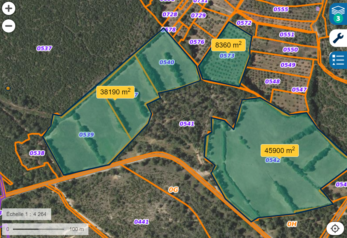 Plan du bâti – Sous-sol (n’est pas à l’échelle) Plan des terres Superficie totale des terres agricoles : Accéder au géoportail IGN